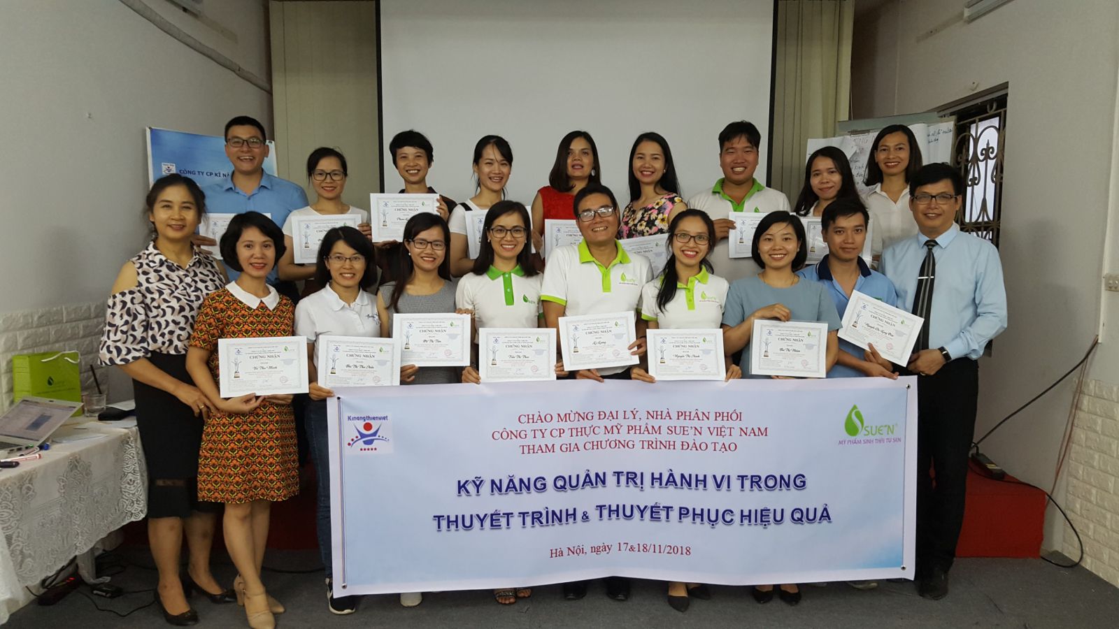 Khóa đào tạo được tổ chức vào 2 ngày 17 – 18/11/2018 tại số 26 Láng, Hà Đông, Hà Nội với sự tham gia của thầy Phan Văn Minh – Giảng viên chính/chuyên gia tại công ty CP kỹ năng Thiện Việt, ông Lê Lương – Phó tổng giám đốc công ty CP Sue’N Việt Nam cùng nhiều đại lý nhà phân phối Sue’N khắp các tỉnh thành hội tụ.